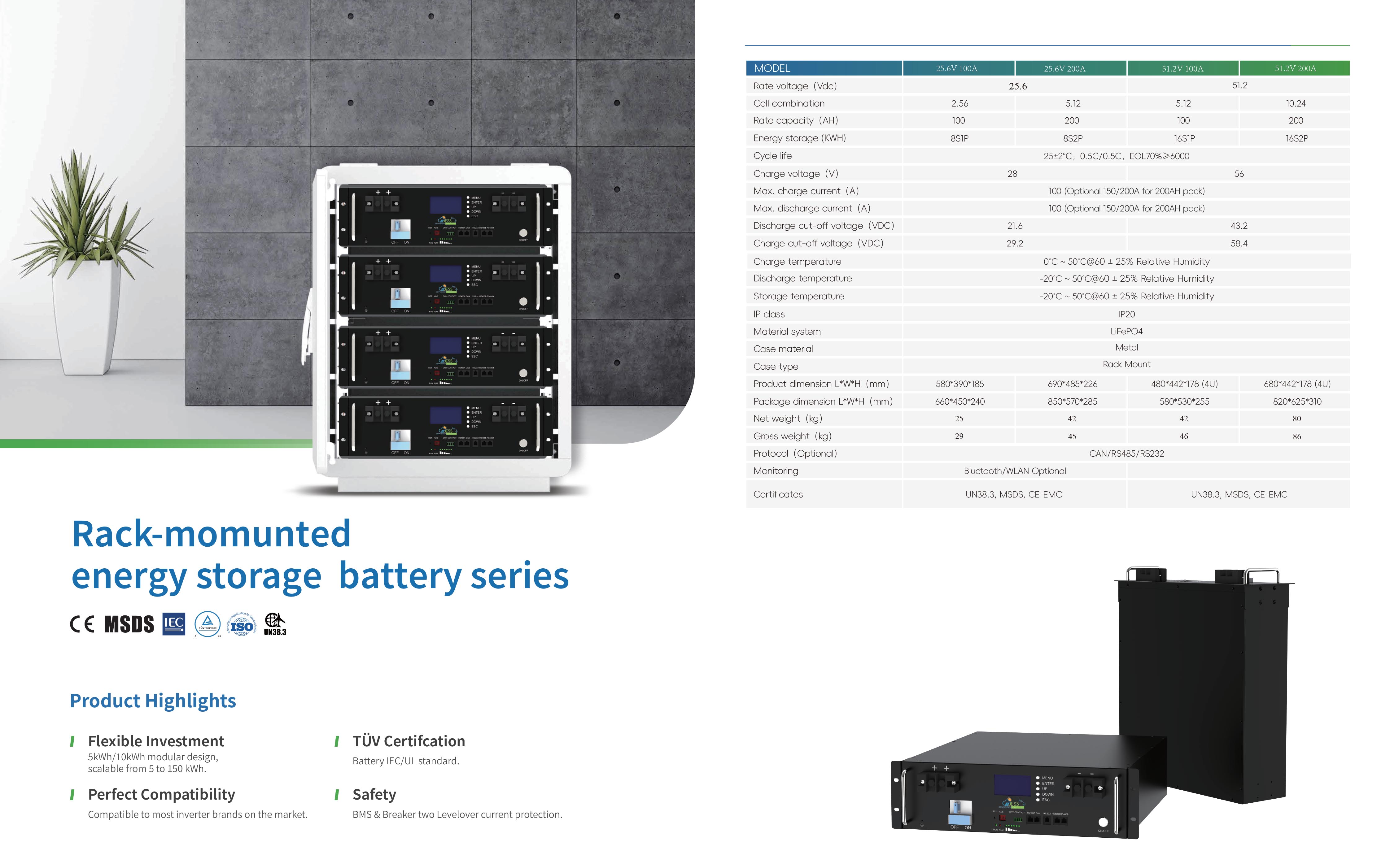 51.2V 100A Lithium Battery Rack Mount | DESSPRO