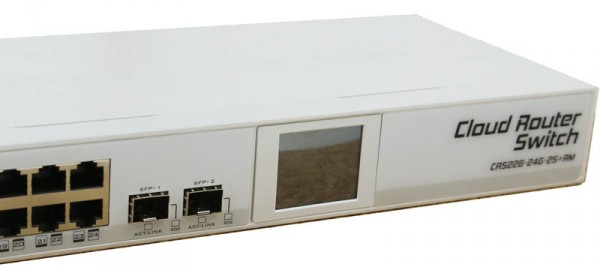 Cloud Router Switch is our new member of our Smart Switch series. It combines the best features of a fully functional router and a Layer 3 switch, is powered by the familiar RouterOS. All the specific Switch configuration options are available in a special Switch menu, but if you want, ports can be removed from the switch configuration, and used for routing purposes. The CRS226 uses a new class of switch chips, which allows us to have two SFP+ ports for 10G connectivity.