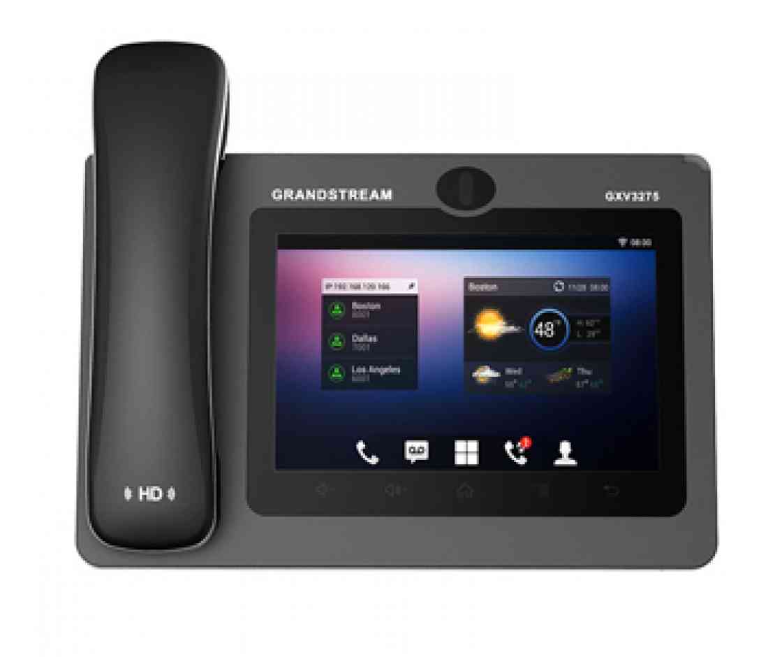 The GXV3275 IP Video Phone for Android™ delivers a powerful voice, video and multimedia business communications experience to keep workers in-touch and up-to-date. This one-of-a-kind 6-line IP phone features a tablet-like 7 inch touch screen and, in addition to voice calls allows users to keep in touch with co-workers and clients through a variety of video calling platforms (Grandstream’s free IPVideoTalk service in addition to any Android app, such as Skype, Google Hangouts, and more). This IP Video Phone for Android offers full access to the Google Play Store and the millions of Android apps – including powerful business productivity apps like SalesForce1, GoToMeeting, service provider apps and more. Additional features include integrated Bluetooth for pairing of headset and mobile devices for contact book/calendar exchange and call transferring, Gigabit ports, integrated WiFi, and more.