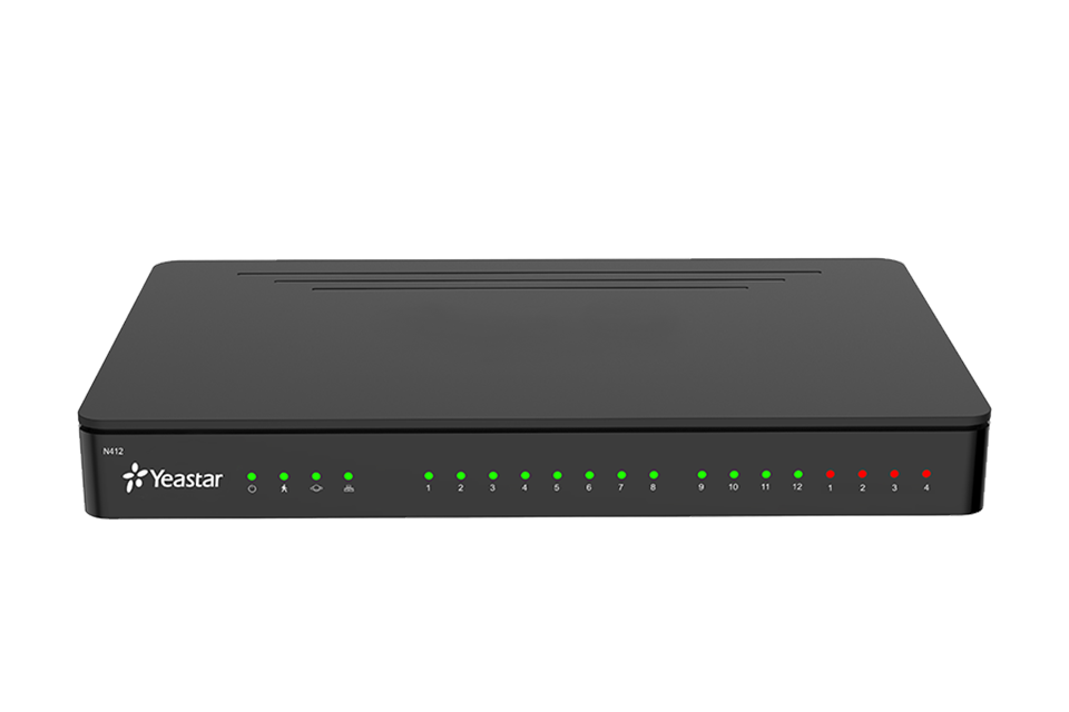 Yeastar N412 can handle up to 4 CO/BRI lines, up to 12 analog extensions, 8 SIP extensions, and 4 SIP trunks