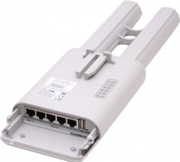 Weatherproof, durable and ready to use. It has five 10/100 Ethernet ports, PoE support and a built-in 400mW 802.11a/n wireless radio. It supports Nv2 TDMA technology with up to 200Mbit aggregate throughput.
