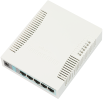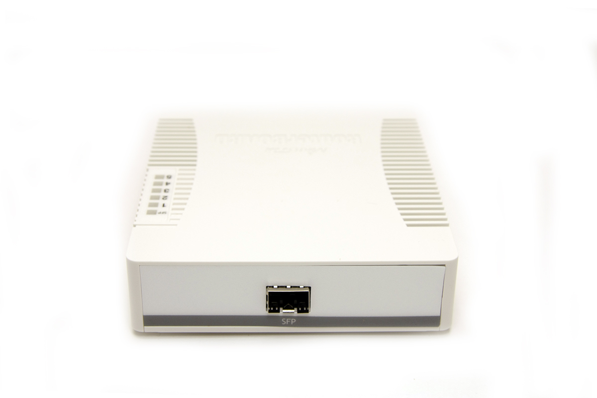 The RB260GS is a small SOHO switch. It has five Gigabit Ethernet ports and one SFP cage powered by an Atheros Switch Chip.