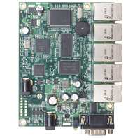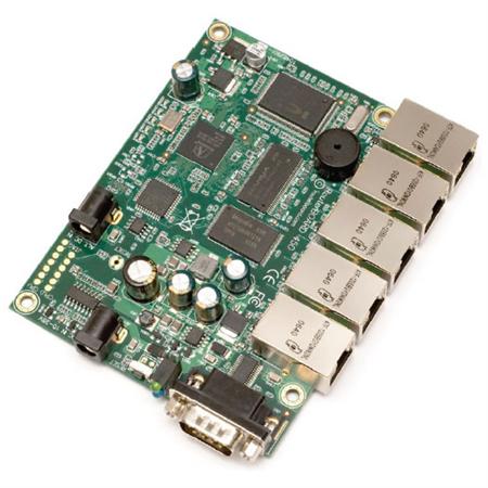 The RB450 is a five port ethernet router with serial port and power jack for OEM applications.