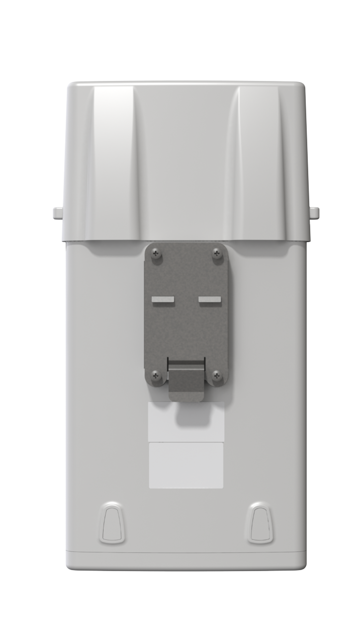 The case can be opened with one hand, and is protected against the elements. USB, Ethernet and a Grounding wire exits are provided on the bottom, behind a protective door.